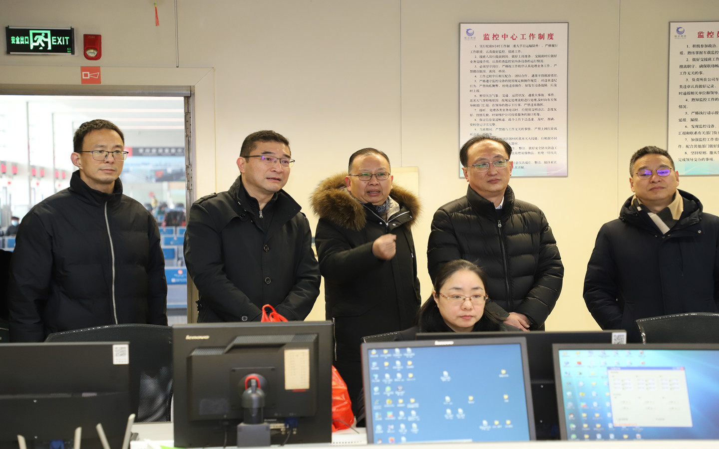 局領(lǐng)導(dǎo)一行代表市局對車站服務(wù)臺、售檢票窗口、監(jiān)控中心、調(diào)度室等地進行走訪,對堅守崗位的職工進行慰問并送上慰問品。朱平春介紹了公司春運期間的運力組織、服務(wù)保障及安全管理情況。局領(lǐng)導(dǎo)表示節(jié)假日期間要加強車輛及駕駛員的現(xiàn)場管理,保證行車安全,同時要不斷提升服務(wù)質(zhì)量,提供溫馨的乘車環(huán)境,確保旅客能夠順利返鄉(xiāng)。